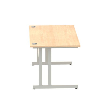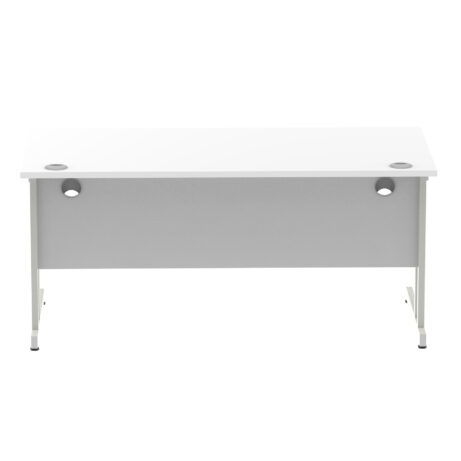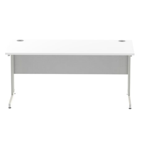 Value-led 1600mm straight desk with cantilever legs delivers a spacious work surface and tidy cable management. The 25mm melamine top, two cable ports, 18mm modesty panel and 2mm ABS edging provide durability, while height-adjustable feet and a 135kg weight capacity support everyday workloads. Compatible with most screen clamps thanks to a 5-inch deep modesty panel. Ideal for office desking and Individual Desks & Workstations layouts.