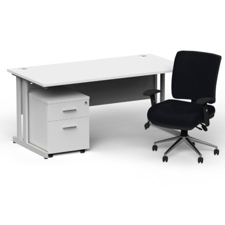 The Impulse 1800mm Cantilever Straight Desk with Mobile Pedestal and Chiro Medium Back Operator Chair is a complete, value-led workstation solution for busy offices. Its cantilever frame provides reliable support, while the integrated mobile pedestal keeps essential storage neatly within reach without sacrificing floor space.