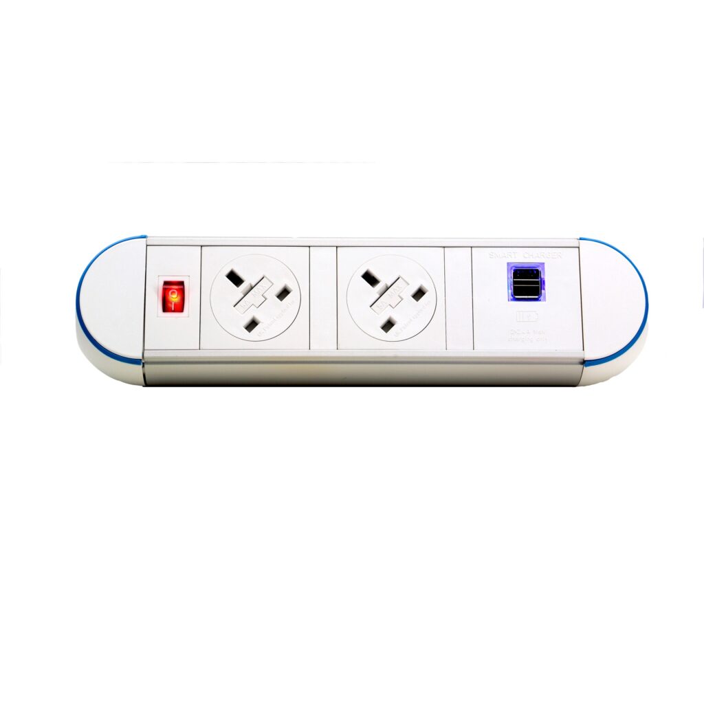 Impulse Desktop Module 2 x 3.15A UK Sockets, 1 x Neon Switch, 1 x 500mm Lead to 3 Pole Connector in Black