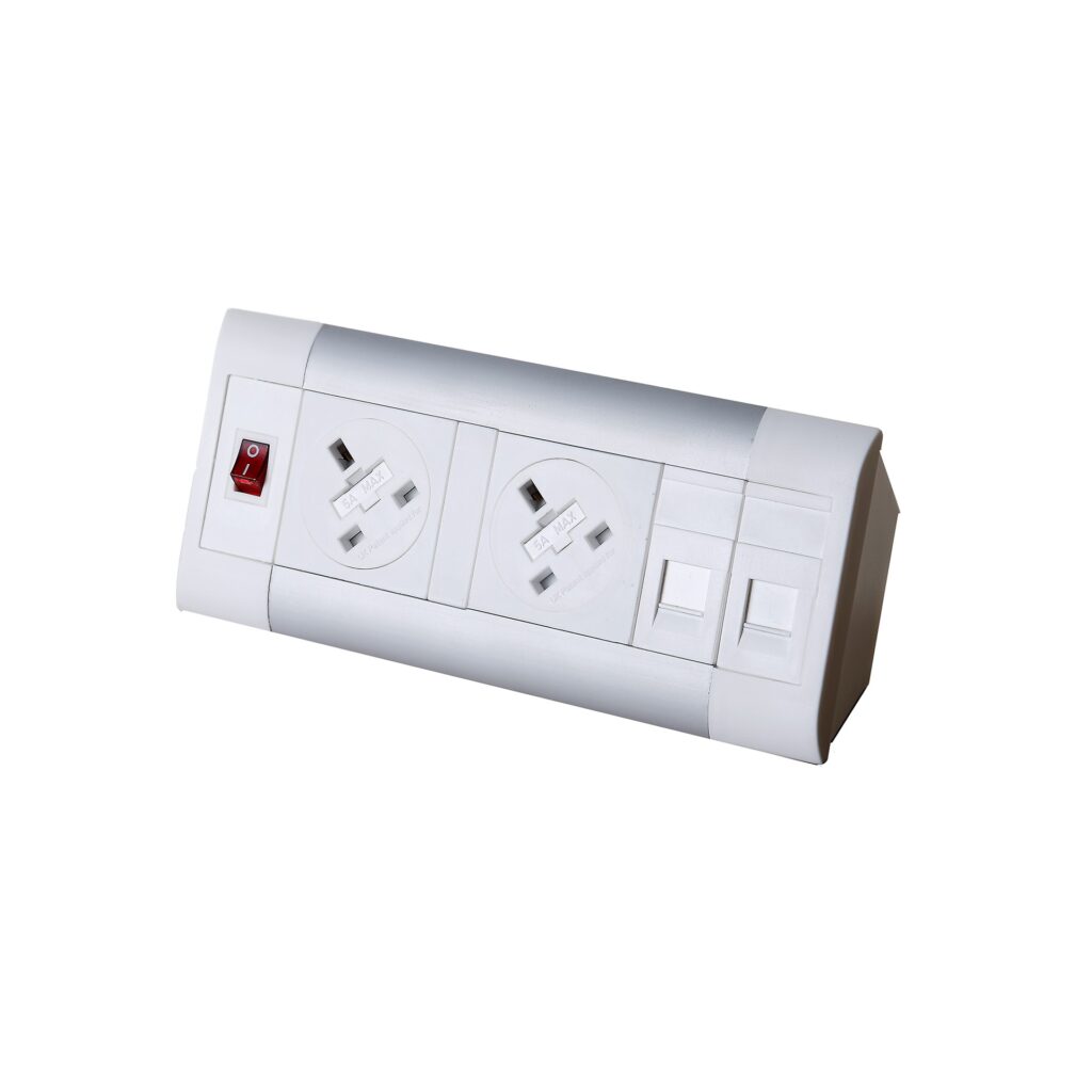 Impulse Desktop Module 2 x 5A UK Sockets, 1 x Neon Switch, 1 x 500mm Lead to 3 Pole Connector in White