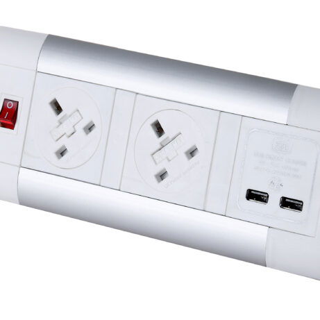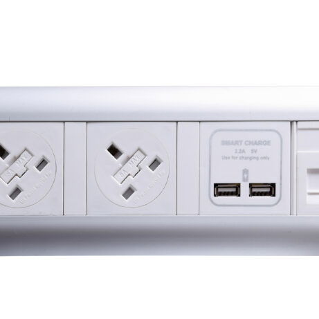 Impulse Desktop Module 2 x 5A UK Sockets, 1 x Neon Switch, 1 x 500mm Lead to 3 Pole Connector in White