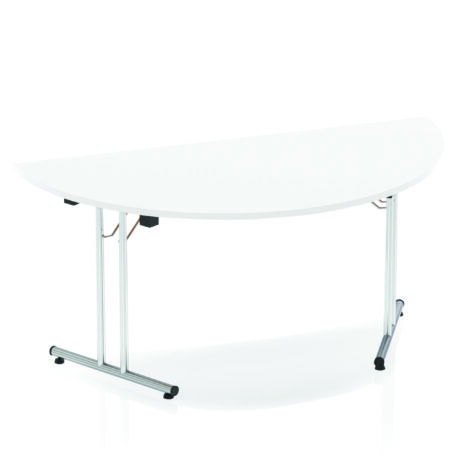 Space-saving, durable meeting surface with a folding semi-circle design, a 25mm beech melamine top and silver-coated legs. This robust table handles 100 Kg and folds away for easy storage, making it ideal for agile, budget-conscious workspaces. Explore Modular / Folding / Fliptop solutions in Tables.