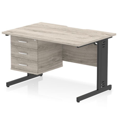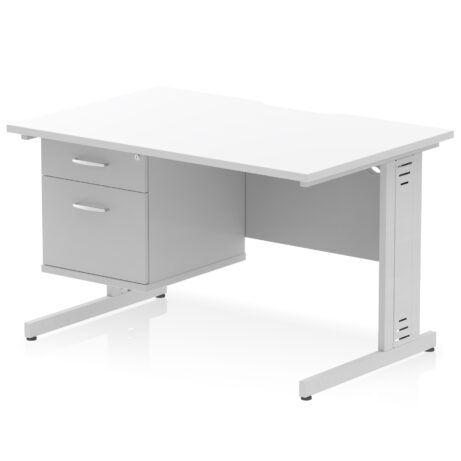 Impulse Scalloped Edge 1200mm Cable Managed Straight Desk With Single Fixed Pedestal