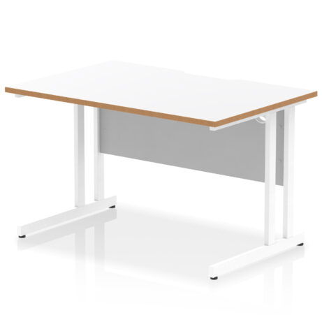 Impulse Scalloped Edge 1200mm Straight Desk Cantilever Leg offers a sturdy, cable-friendly desking solution for busy offices. At 1200mm wide, it supports teams and individuals with a 25mm heat resistant melamine top and a scalloped edge for cable management. It features an 18mm modesty panel, 2mm ABS edging, coated double strut legs, height adjustable feet and a 135 Kg weight capacity, plus two modesty panel slots and a deep set panel to suit most screen clamps. Explore Desking or Individual Desks & Workstations for more options.