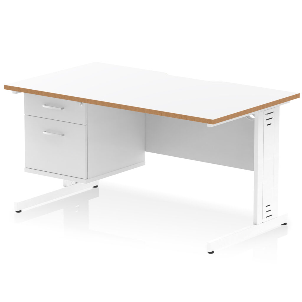 Impulse Scalloped Edge 1400mm Cable Managed Straight Desk With Single Fixed Pedestal