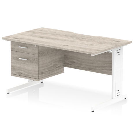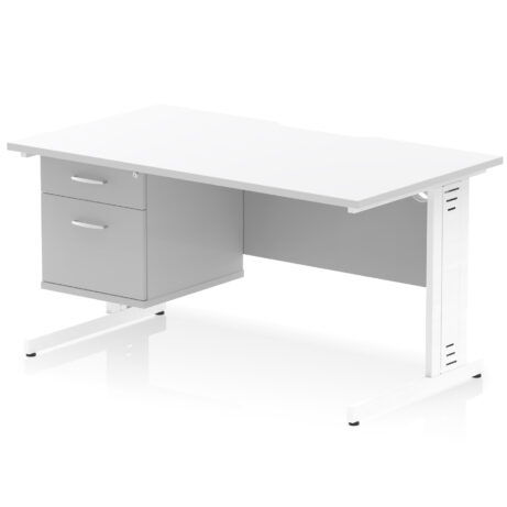 Impulse Scalloped Edge 1400mm Desk combines cable‑managed practicality with a single fixed pedestal for tidy storage. Built on a 25mm heat‑resistant melamine top, it offers a 135 kg weight capacity and sturdy coated double‑strut legs. A scalloped edge with a wire management panel keeps cables organised, while height adjustable feet ensure a level workspace across varied floors.