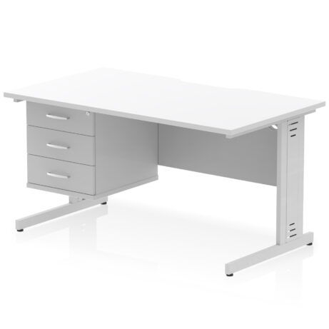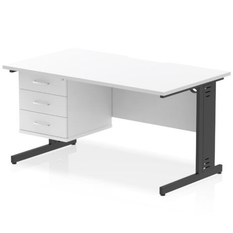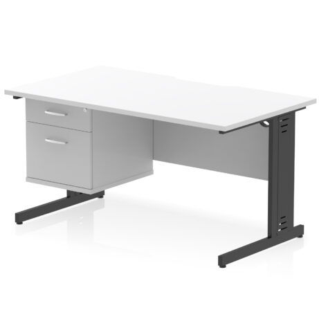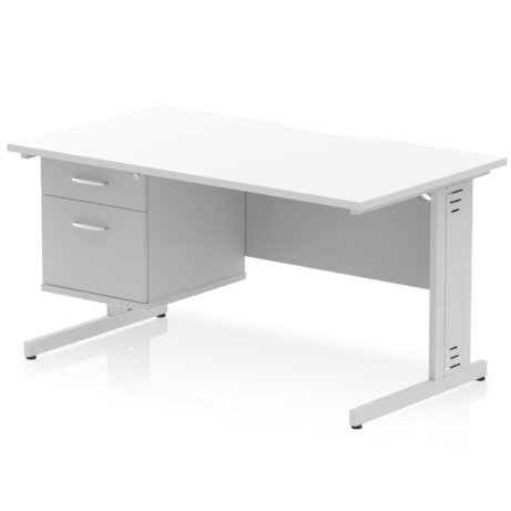 Impulse Scalloped Edge 1400mm Cable Managed Straight Desk With Single Fixed Pedestal