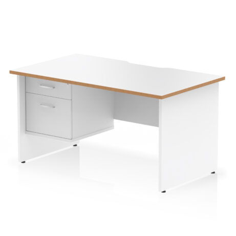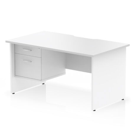 The Impulse Scalloped Edge 1400mm Panel End Straight Desk With Single Fixed Pedestal is a robust, professional workstation designed for busy offices. It blends a clean, contemporary profile with practical features to keep desks tidy and cables neatly managed, making it an ideal choice for teams that value efficiency and organisation.