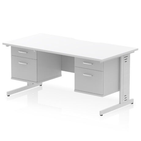 The Impulse Scalloped Edge 1600mm Cable Managed Straight Desk With Two Fixed Pedestal is a practical, professional desking solution designed to keep busy workspaces organised. Perfect for office desking environments and individual desks & workstations layouts, it blends generous storage with intelligent cable management so you can work without clutter.
