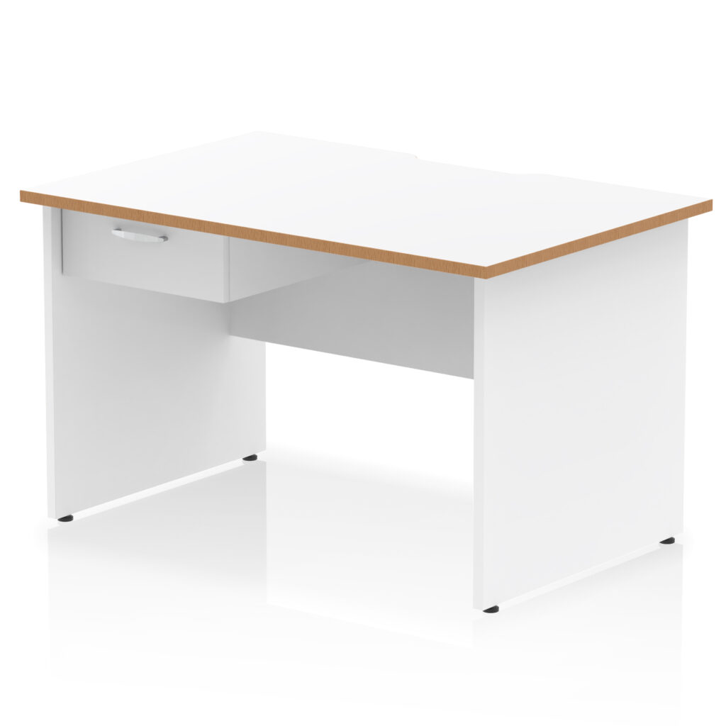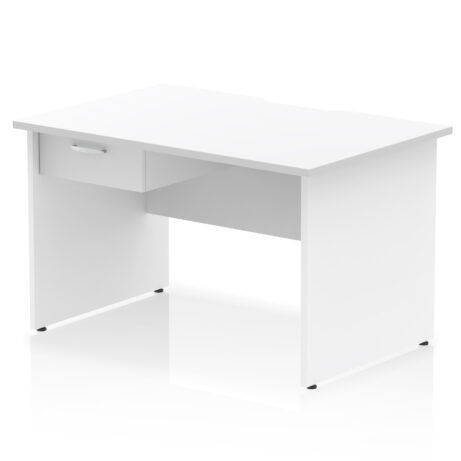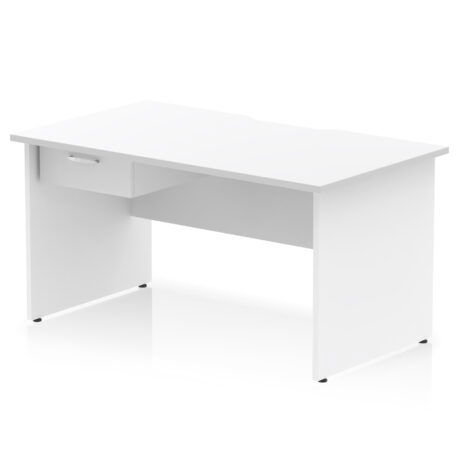 The Impulse Scalloped Edge Panel End Straight Desk Frame With Single One Drawer Fixed Pedestal is a practical, value-driven desking solution designed for busy offices. It combines a robust frame with built-in storage, making it ideal for teams and individual workspaces within Desking environments and broader office layouts, including Individual Desks & Workstations setups.