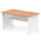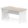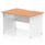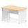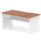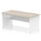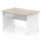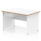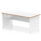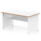 Key design features include a 25mm thick top finished in heat-resistant white or oak melamine, an 18mm modesty panel, and 2mm protective ABS edging. The scalloped edge supports cable management, helping keep wires tidy as you work. A height-adjustable foot system ensures stability on uneven floors, while steel-to-steel fixings provide reliable assembly.