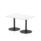 25mm thick desk top profile | Dual, brushed stainless steel effect circular base (580mm diameter) | Brushed stainless steel pillars (76mm diameter) | Weighted base provides stability | Two part bolted frame system