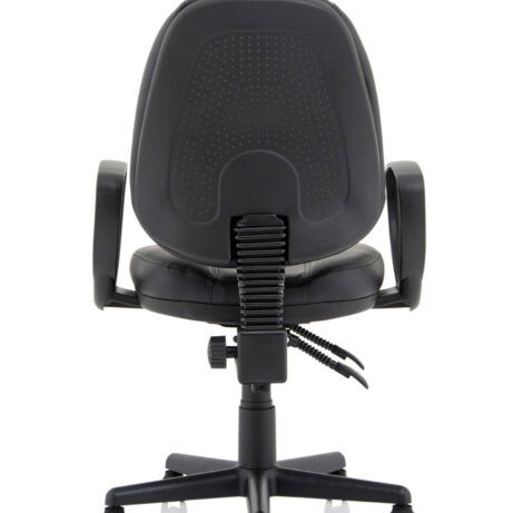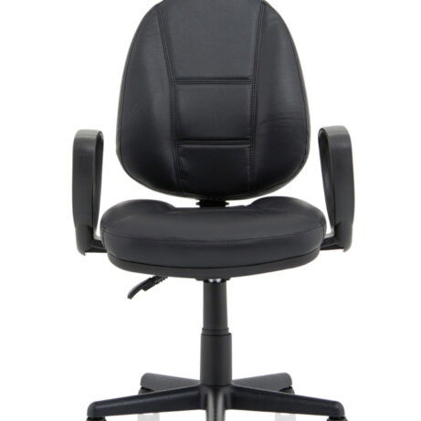 Crafted with leather upholstery and a medium-height back, this chair provides comfortable support for long tasks. A contoured seat and a stable five-star base with caster wheels make it easy to position precisely where you work, helping you focus without interruptions.