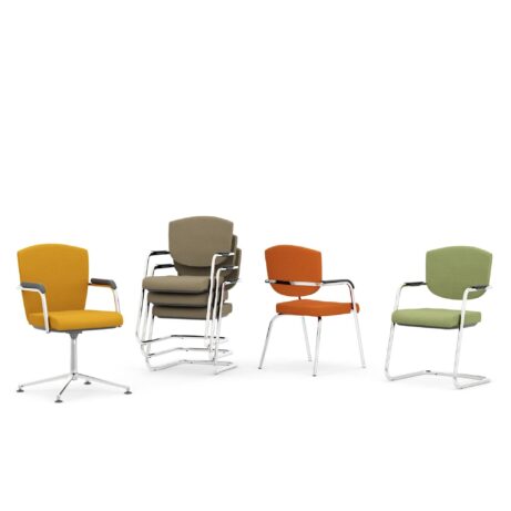 For placement, KEY Meet is suitable for Meeting Chairs within conference settings and sits comfortably within broader office seating ranges. Its combination of upholstery, back options, and frame configurations makes it a reliable choice for flexible spaces that host presentations, group work, and training sessions.