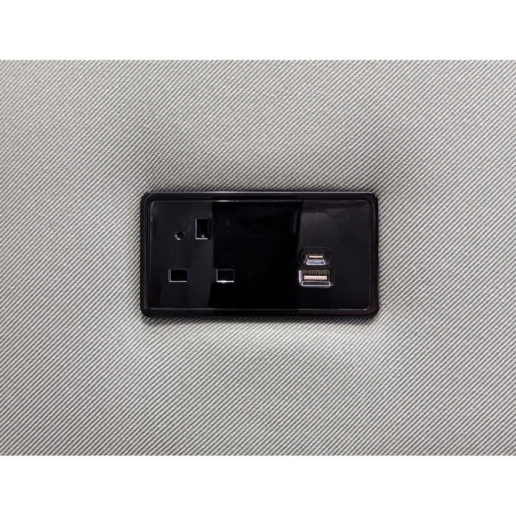 Designed as part of the Kuddle range of sofas, dens, and booths, it integrates neatly with existing Armchairs & Sofas and Reception settings, providing a discreet power solution without compromising comfort or aesthetics. The unit features USB charging ports (visible on the module) to support smartphones, tablets, and other devices, with clean, tidy cable management.