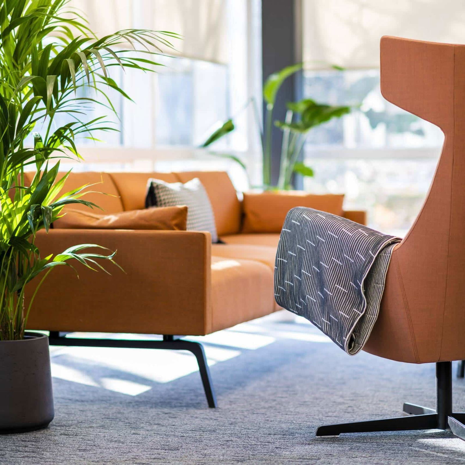 LEO delivers premium seating for collaborative spaces with a design-led silhouette and sprung, fully upholstered comfort. Available as an armchair, 2- and 3-seater sofas, it features matte black feet and a wide range of fabrics and vinyl. Widths span from 950mm to 2570mm with a 420mm seat height and 820mm depth. A matching coffee table (1200w x 700d x 300h) completes the suite. Lead time: 5-6 weeks.