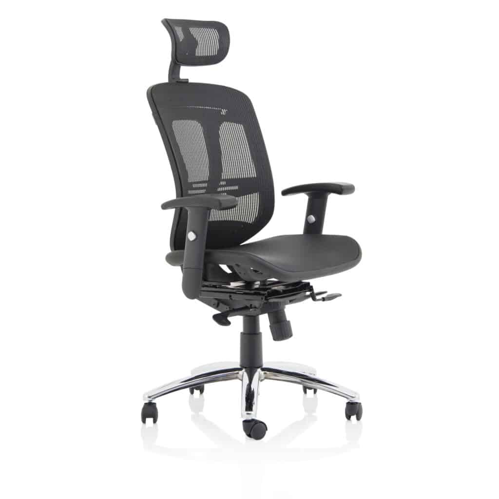 Breathable mesh back, built-in headrest and height-adjustable arms deliver all-day comfort for busy workdays. The Mirage II is a practical choice for desks in Mesh Chairs and Task & Operator Chairs, featuring smooth-rolling mobility from a chrome five-star base. Explore more in our office seating range.