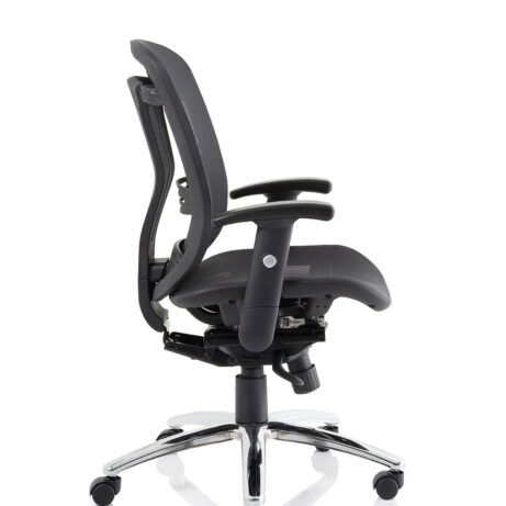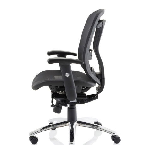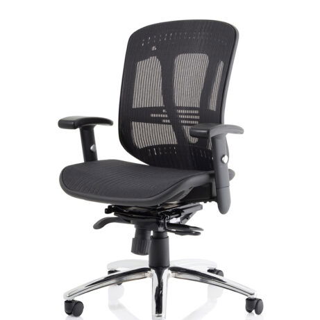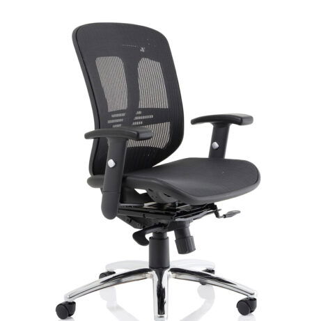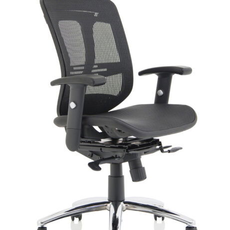 Breathable mesh back, built-in headrest and height-adjustable arms deliver all-day comfort for busy workdays. The Mirage II is a practical choice for desks in Mesh Chairs and Task & Operator Chairs, featuring smooth-rolling mobility from a chrome five-star base. Explore more in our office seating range.