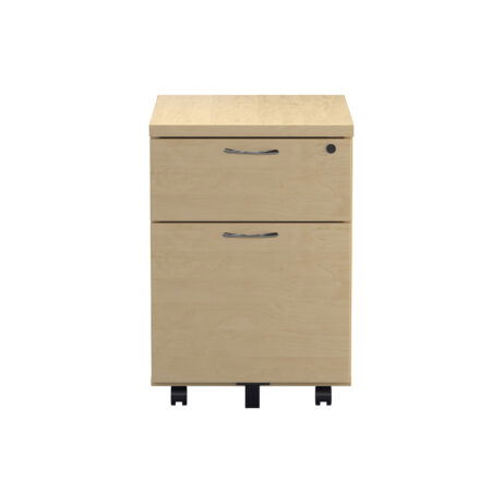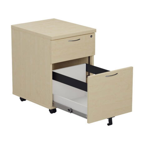 A mobile, two-drawer under-desk pedestal designed for flexible workspaces. With lockable drawers, 100% bottom drawer extension, Smooth Accurize runners, and castors for easy reconfiguration, it keeps A4 and foolscap hanging files neatly organized. Crafted from FSC-certified timber and available in multiple finishes, it measures 404 x 500 x 595–595 mm.