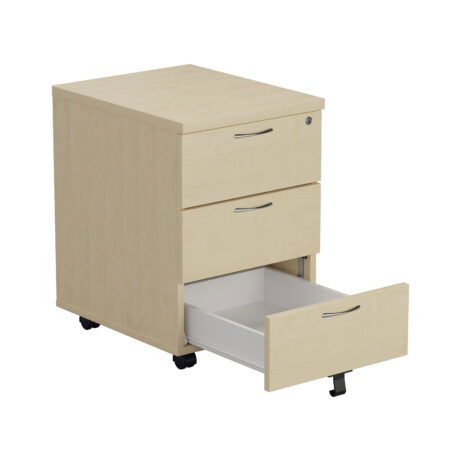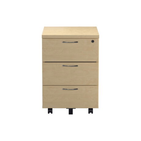 Compact, lockable under-desk storage designed for busy workspaces. The Mobile Pedestal 3 Drawer provides three full-width drawers on smooth Accurize runners, with castors for easy repositioning. It’s lockable and supplied with two keys for security, and finished in a range of wood tones to match your office. Durable construction with a solid back and wooden drawer inners keeps up with daily use. Part of our Wooden Storage range.