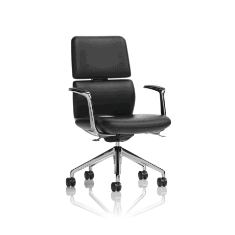 Mode Executive Chair blends ergonomic support with executive styling. With gas-height adjustment, a synchro-tilt mechanism, and integrated lumbar support, it keeps you comfortable all day. Adjustable arms, easy self-assembly, and a durable chrome base with smooth casters make it a practical choice for executive chairs in office seating settings.