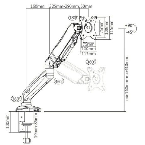 Why it’s a smart choice: it offers effortless, tool‑free adjustment within roughly a 50 cm radius of the mounting point — you can position your screen in seconds without any tools. It’s universally compatible with LED/LCD monitors that use VESA 75 or 100 mounting holes and weigh between 2 and 6.5 kg, suitable for screens from 13 to 27 inches.