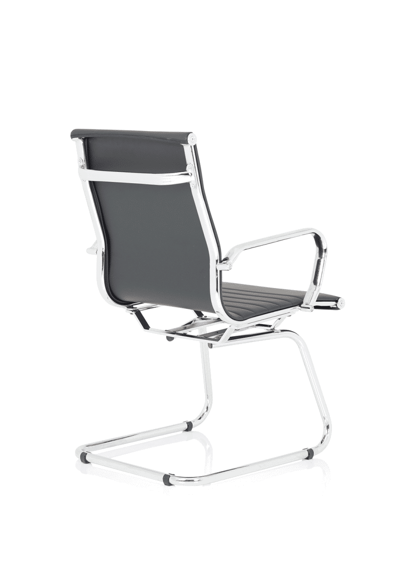 The Nola Black Leather Cantilever Visitor Chair with Arms is a crisp, contemporary seating option for welcoming spaces. Perfect for Reception areas, quick client meetings, and short visits, it blends a polished chrome cantilever base with black leather upholstery to deliver professional style with lasting durability.