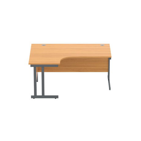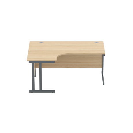 Sturdy left-hand corner desk with a steel double upright cantilever frame delivers stability and efficient space use for busy offices.