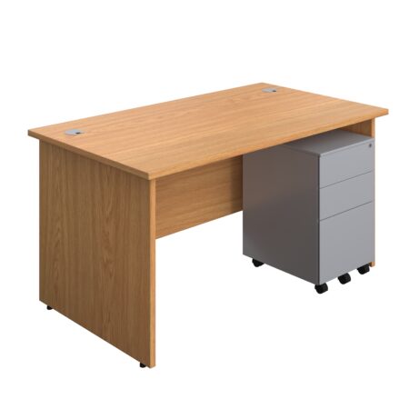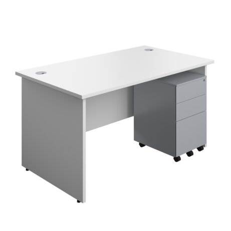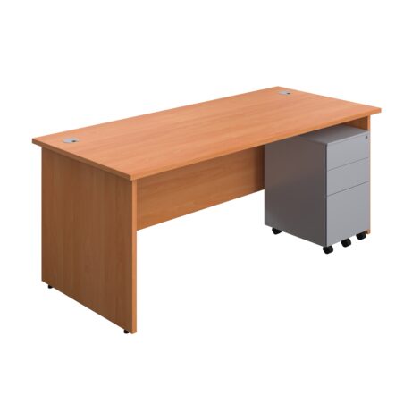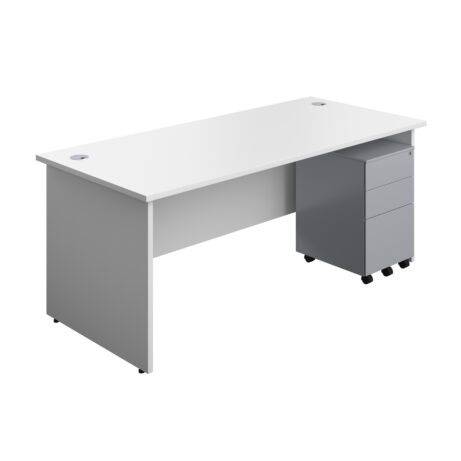 Panel Rectangular Desk + 3 Drawer Steel Pedestal Bundle (FSC)