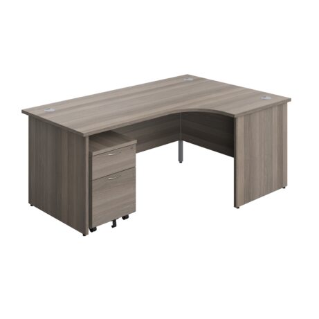 Stylish, space-saving and built to last – the Panel Right Hand Radial Desk + 2 Drawer Mobile Pedestal Bundle combines a contemporary right-hand radial desk with a mobile pedestal for under-desk storage. Integrated cable ports keep wires tidy; sturdy metal fixings and adjustable feet ensure stability on uneven floors. FSC-certified and available in multiple finishes, it’s well suited to Desking and Individual Desks & Workstations configurations. Dimensions: 1800 x 1200 x 730-730 mm.