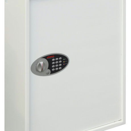 The safe uses an advanced, user-friendly electronic lock with anti-tamper or bounce solenoid protection, and it includes a key override facility with two keys supplied should the code be misplaced.
