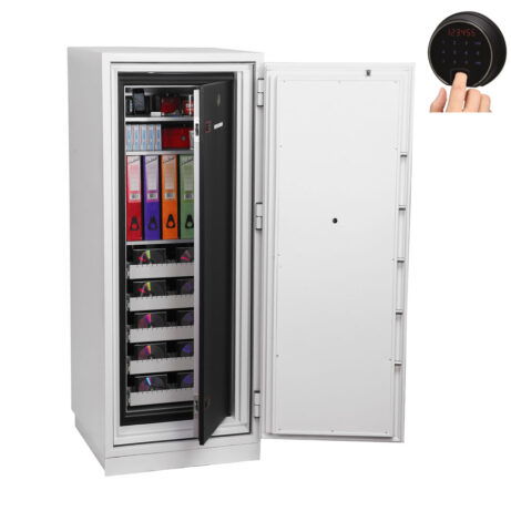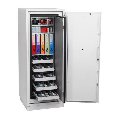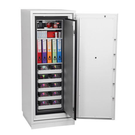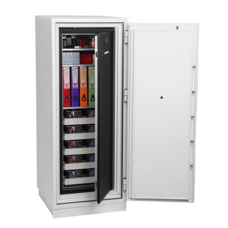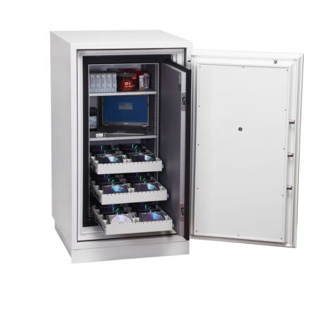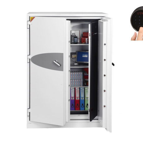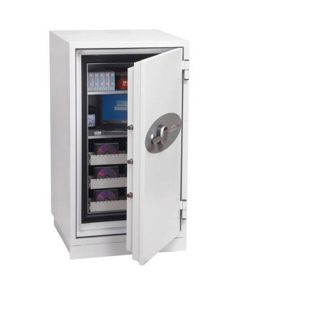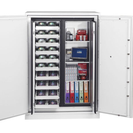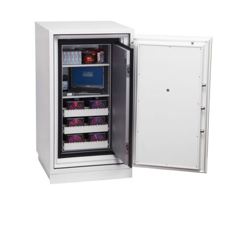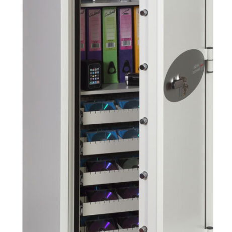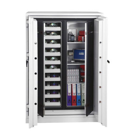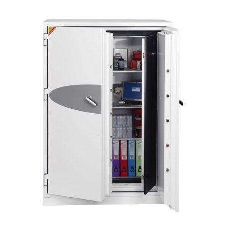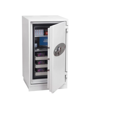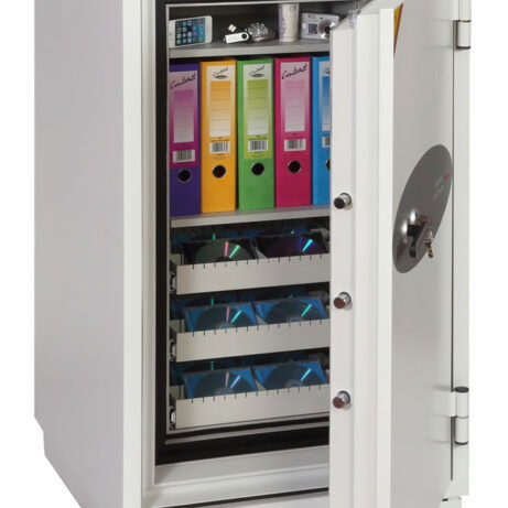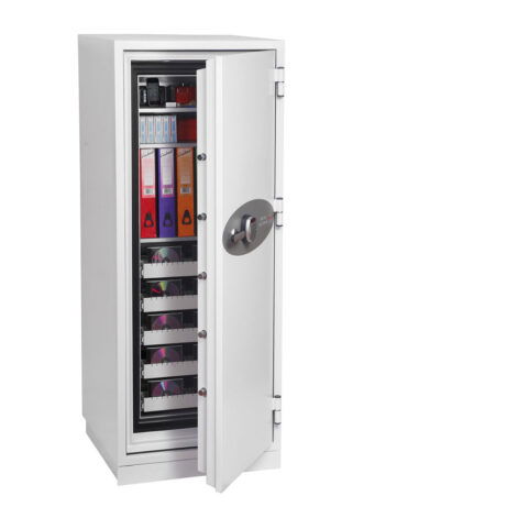 The Phoenix Data Commander Data Safe combines high-capacity media storage with proven 120-minute fire protection and flexible security options for busy offices. With two adjustable shelves, three pull-out trays, and a choice of electronic, fingerprint or key locking (programmable with dual control, hidden and scrambled codes where applicable), it’s designed for secure, scalable data storage. It has also been drop-tested from 9.1 metres. Delivery is POA.