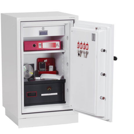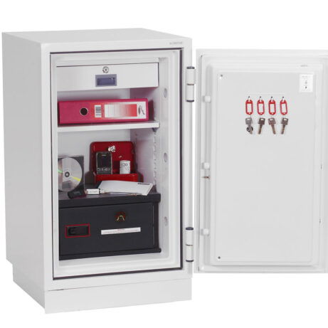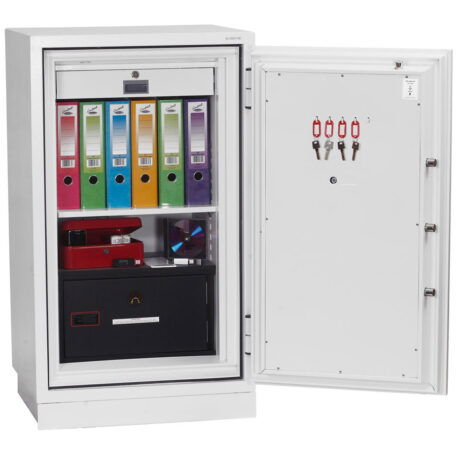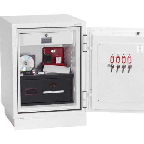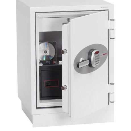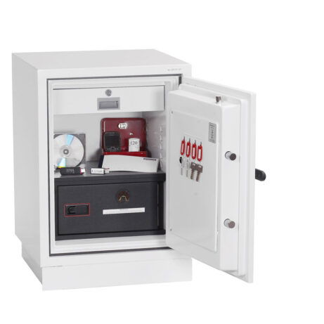 Why choose the Datacombi? It offers durable fire protection across media: 90 or 120 minutes for paper documents (size dependent), and the same 90 or 120 minutes for computer disks and tapes. For digital media such as DVDs, USB memory sticks and hard drives, you’ll get 60 minutes of fire protection. In terms of security, it provides overnight cash and valuables protection up to £2,500 or £25,000, helping you manage risk during operating hours and beyond.