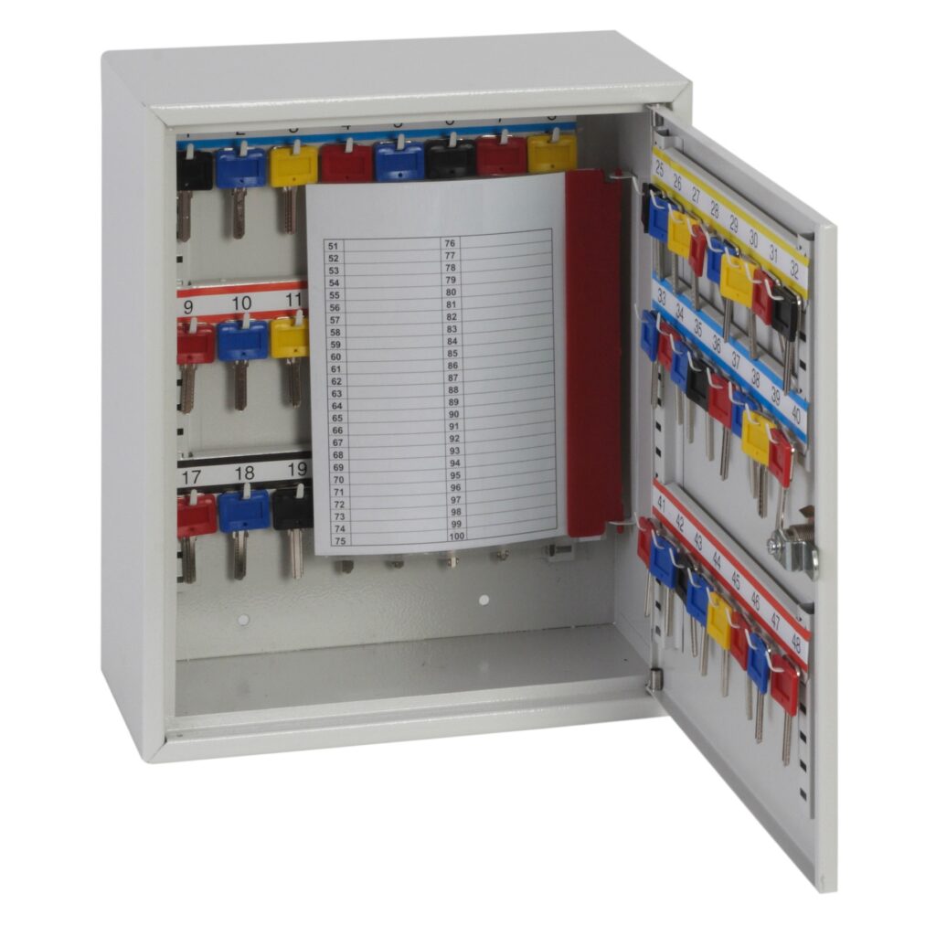 Organise bulky or high-volume keys with the Phoenix Deep Key Cabinet. A wall-mount key management solution offering 50, 100 or 200 hooks, adjustable bars, tabs, rings and labels, plus removable indexes. Choose from electronic, cylinder or mechanical locks for flexible security, with a durable powder-coated finish and included mounting bolts. Safes & Locking Boxes suitable for busy workshops and agencies. Contact us for assistance or more information.