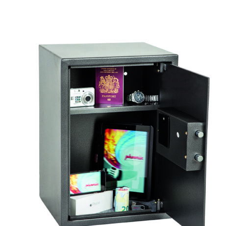 SECURITY PROTECTION – Recommended for overnight cash cover of £1,000 cash or £10,000 valuables | LIGHTING – The electronic locking version is fitted with a bright internal LED interior light so the contents can easily be seen, even in the most dimly lit cupboards | CONSTRUCTION – Twin live locking bolts and concealed internal hinges for increased security | FIXING – Ready prepared for fixing to the floor or wall, with fixing bolts supplied for brick walls or concrete floors | COLOUR – Finished in a high quality scratch resistant Metallic Graphite paint | SPECIAL FEATURES – Internal width of Size 3 makes it ideal for the storage of laptops up to 17″