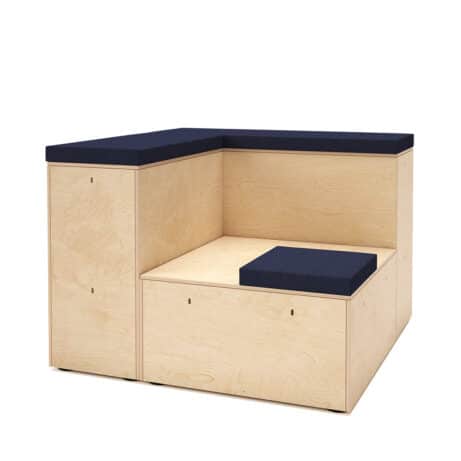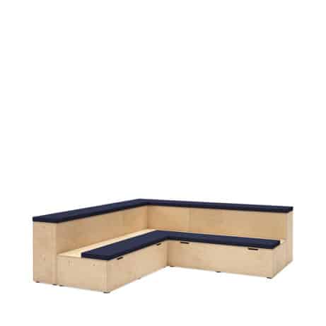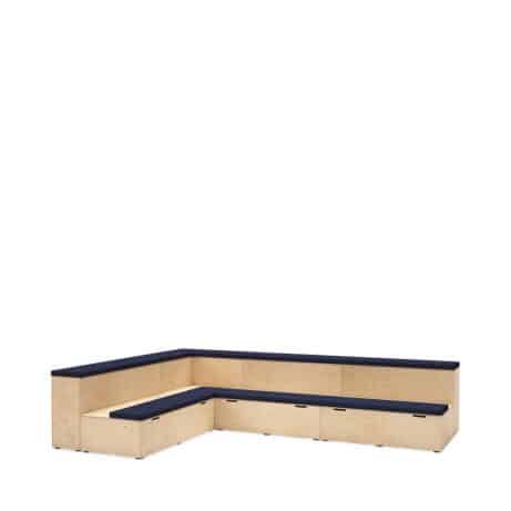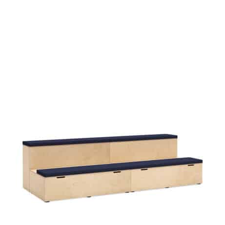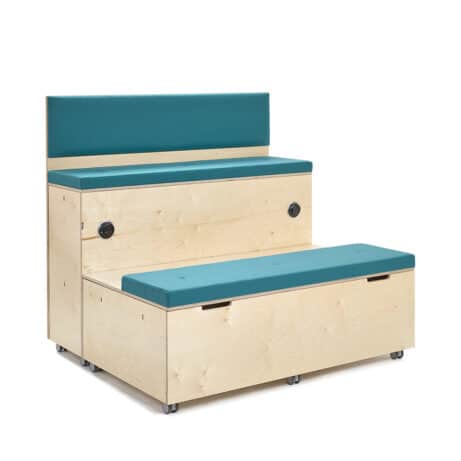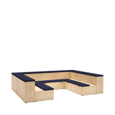Flexible, modular seating for education and presentation spaces. PLATFORMS – Faux Leather offers two-tier auditorium modules with practical under-seat storage and upholstered seat pads as standard. Configure the system across 1350mm straight, 1540mm straight and 1155mm corner units to suit your room, with optional integrated power, lockable casters and floor coverings for a tidy, adaptable space. Ideal for training rooms, lecture theatres and multi-use areas.