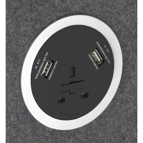 One tidy power port, three charging options. The Power Module delivers 1 UK socket and 2 USB Smart Chargers in a compact circular unit with a 500mm lead, giving you flexible charging at desks, in meeting areas and other workspaces within the Phonic range. Designed to minimise cable clutter and keep devices ready for use, it arrives with all fixings needed for straightforward installation.