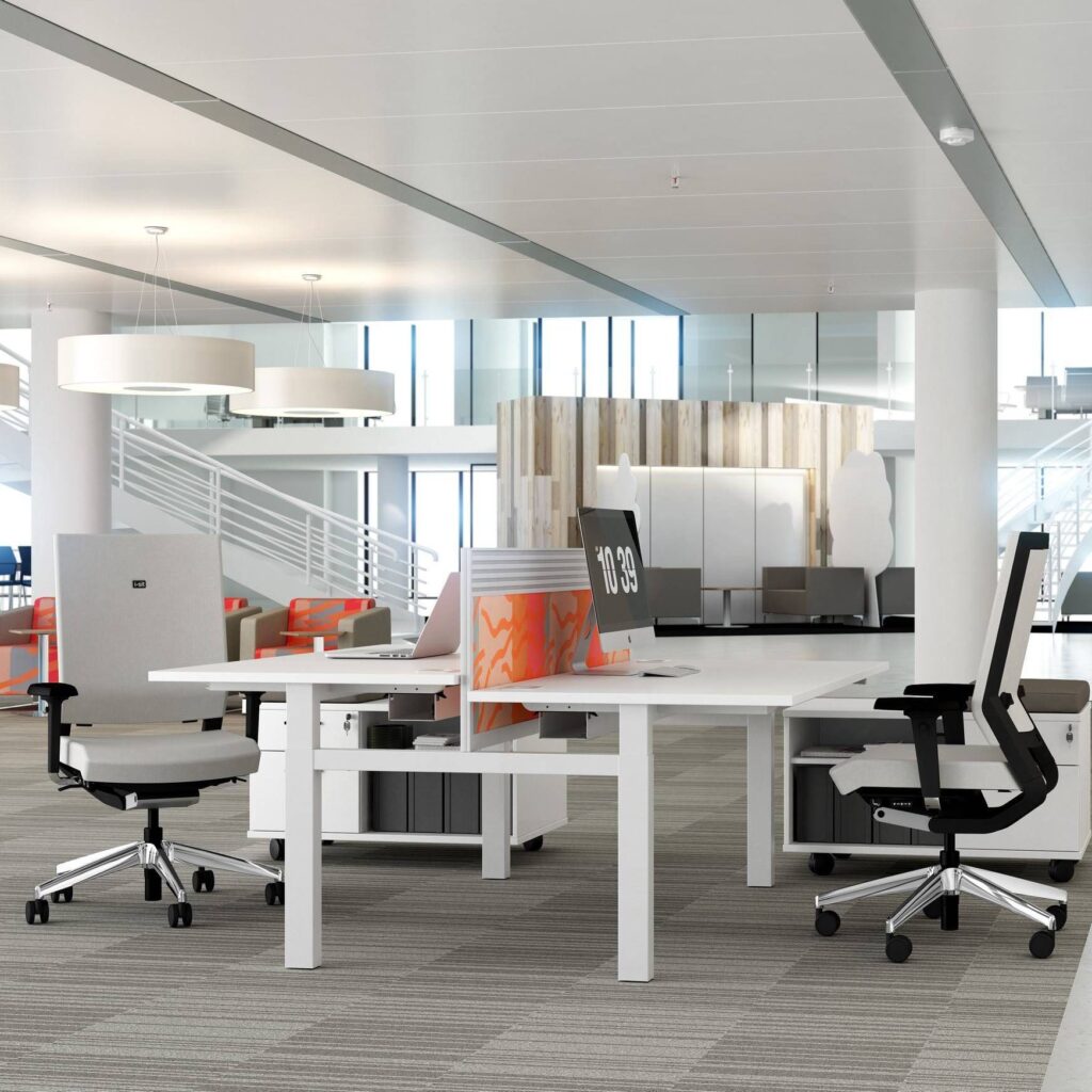 Progress Lite is a height adjustable double bench, inclusive of a horizontal cable tray under each desk top. The system offers height adjustment from 650mm to 850mm via a rotating crank handle that can be folded into a recess within the frame, when not in use. Screen panels are compatible with Progress Lite providing the flexibility to segregate each user’s space.