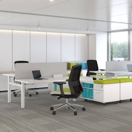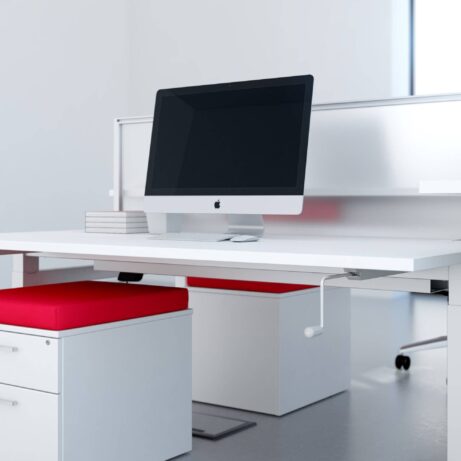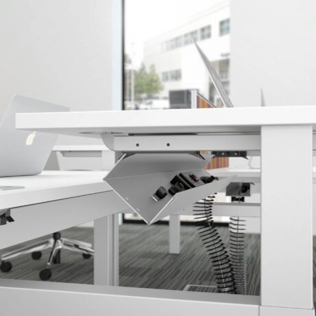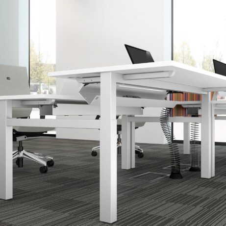 Progress Lite is a height adjustable double bench, inclusive of a horizontal cable tray under each desk top. The system offers height adjustment from 650mm to 850mm via a rotating crank handle that can be folded into a recess within the frame, when not in use. Screen panels are compatible with Progress Lite providing the flexibility to segregate each user’s space.