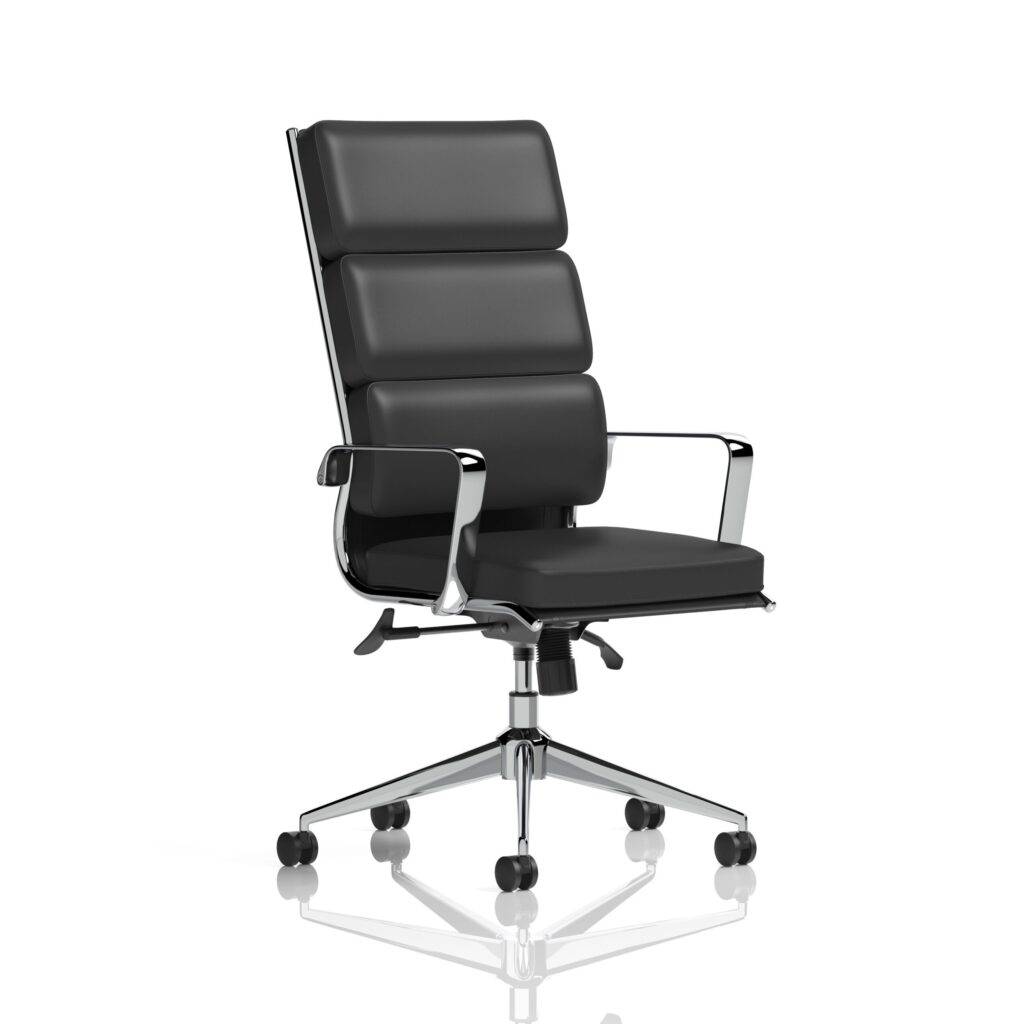 Premium high-back executive chair in leather, designed for all-day comfort and authoritative presence at the desk. The Savoy combines a tall, multi-section back with polished chrome arms for a professional, timeless look that fits private offices, boardrooms, or executive suites. Explore related Executive Chairs and Seating options. Contact us for assistance or more information.