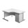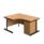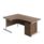 Space-saving left-hand radial desk with a three-drawer high mobile pedestal, finished with a wooden top and robust steel frame. Dimensions 1600mm x 1200mm x 730mm, with adjustable feet for level surfaces. FSC-certified for responsible procurement. Perfect for office desking and Individual Desks & Workstations in growing workplaces.