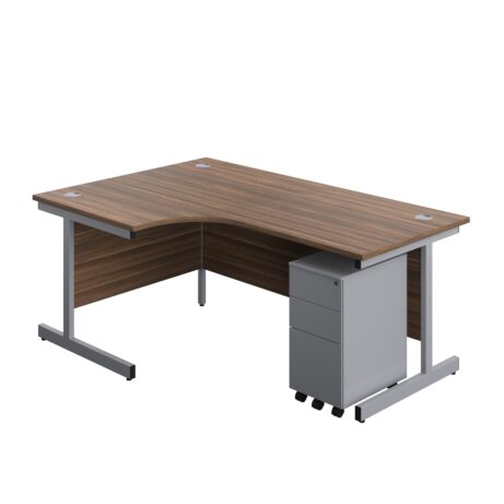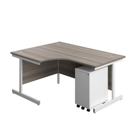 Single Upright Left Hand Radial Desk + Slimline Steel Pedestal 3 Drawers (FSC)