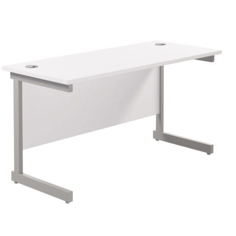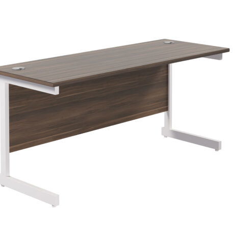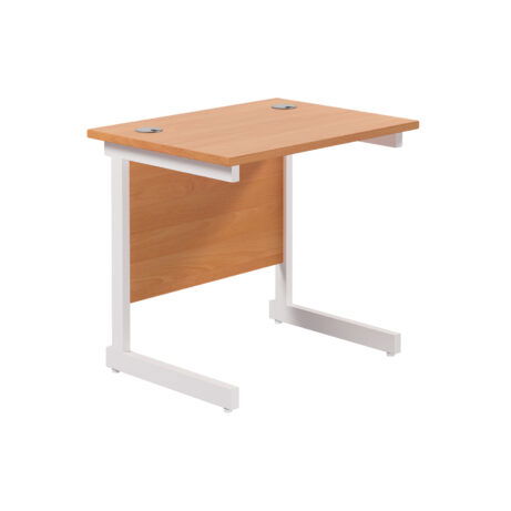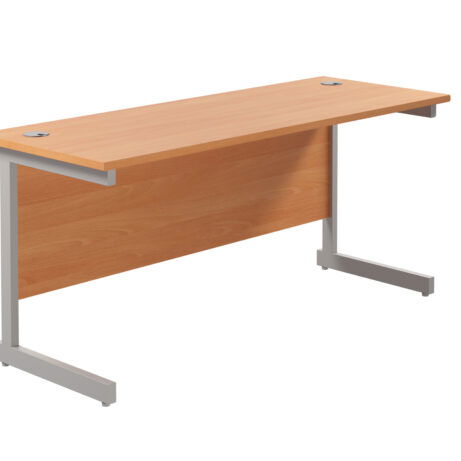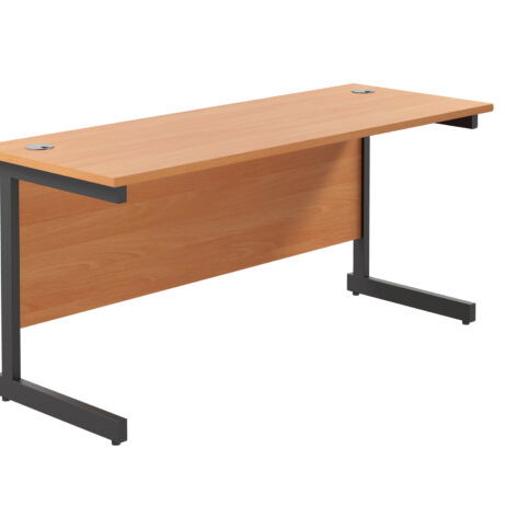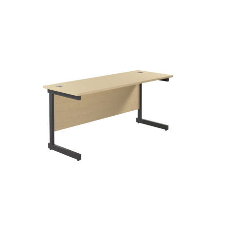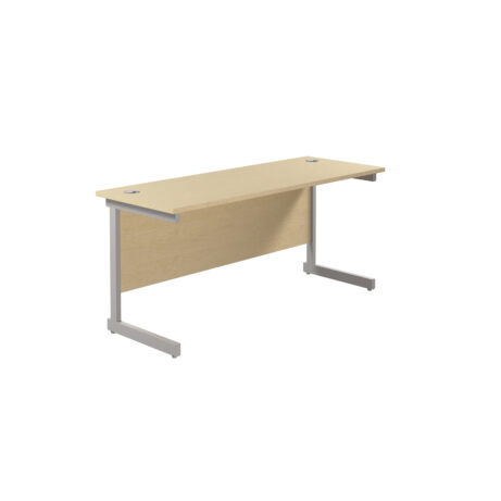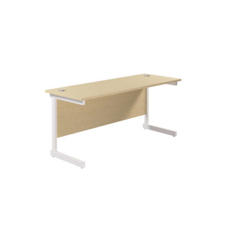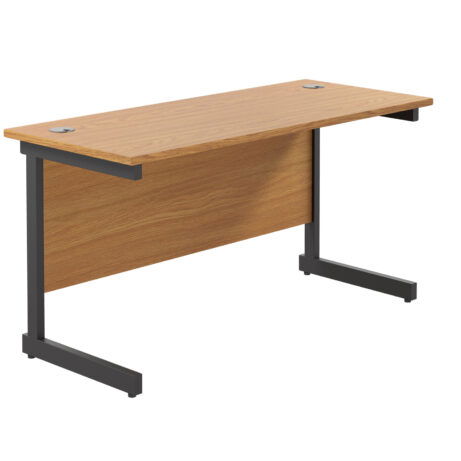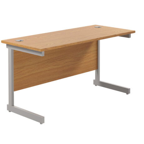 The Single Upright Rectangular Desk is a compact, 600mm-deep workstation on a robust cantilever frame, with standard cable ports, adjustable feet and included modesty panels for privacy. It comes in a range of wood top and frame finishes to match your space. Ideal for office desking and Individual Desks & Workstations setups in homes or offices.