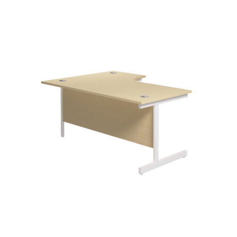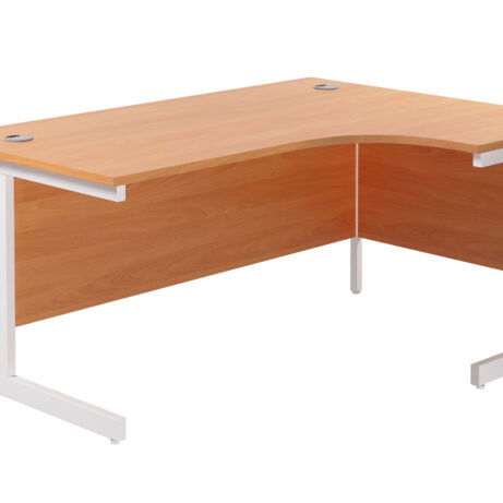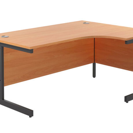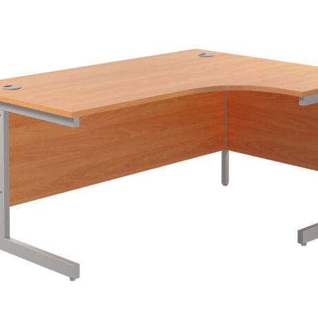 The Single Upright Right Hand Radial Desk offers a durable, neat workspace with a right-hand radial design that fits neatly into corners. It features a robust cantilever frame, integrated cable ports and modesty panels, plus adjustable feet for levelling on uneven floors. Available in a range of wood tops and frame finishes, with a generous 1800mm W x 1200mm D surface and 730mm height.