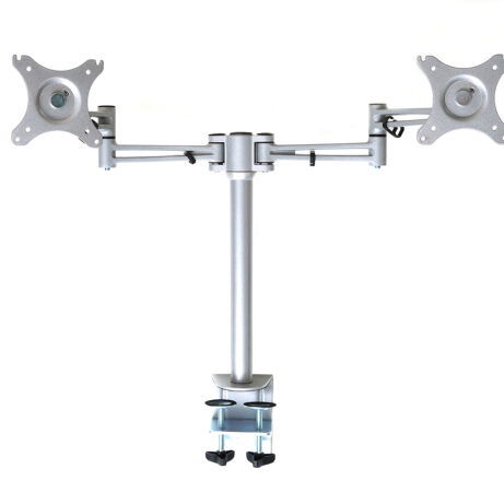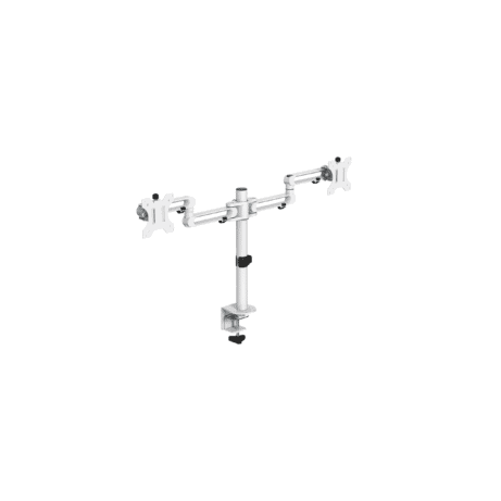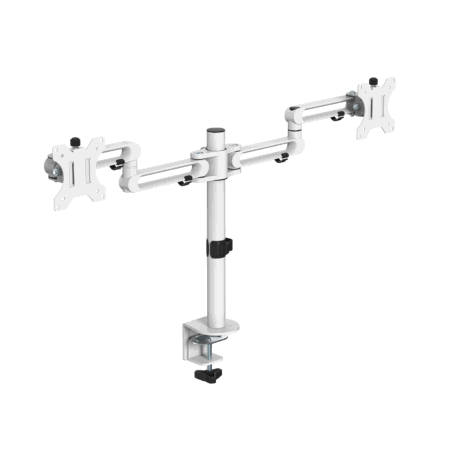 Dual‑screen simplicity, tool‑free setup. The Twin Pole Mounted Monitor Arm holds two flat panel displays up to 10kgs each and installs through‑desk in under two minutes. Cable management clips keep cables tidy, making it ideal for shared or hot‑desk environments. Explore this and more in our Accessories range.
