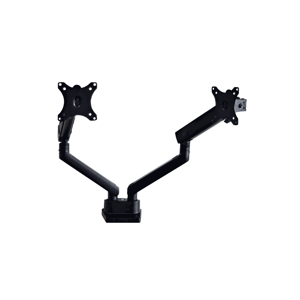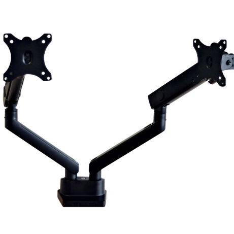 The Twin Spring Assisted Monitor Arm offers a space-saving dual-monitor setup for two identical screens up to 8 kg per arm, with spring-assisted height/tilt, quick-release VESA plates and discreet cable management. Dimensions: 250 x 545 x 450–450 mm.