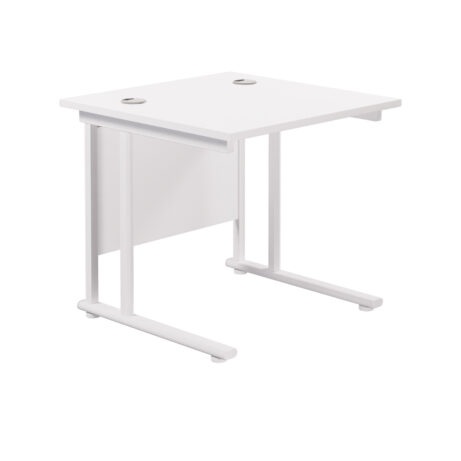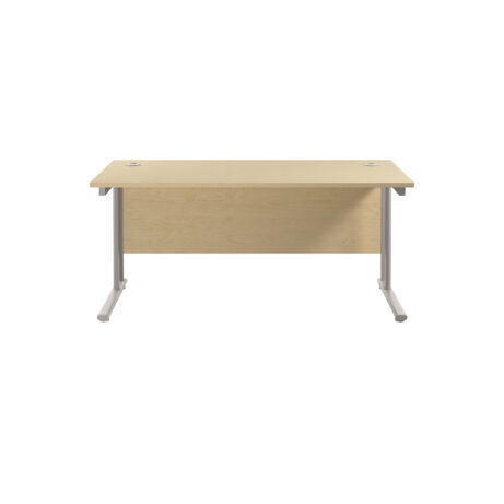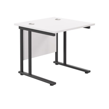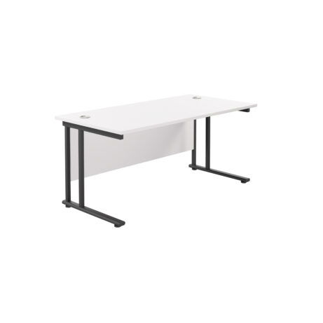 Maximise workspace with tidy cables – the Twin Upright Rectangular Desk offers 1800mm of width and 800mm of depth on a stable powder-coated frame. It features an easy-to-clean, heat- and stain-resistant top, adjustable feet for level surfaces, a cable port, and a modesty panel. Frames available in white, silver or black. Ideal for Desking in modern workspaces.
