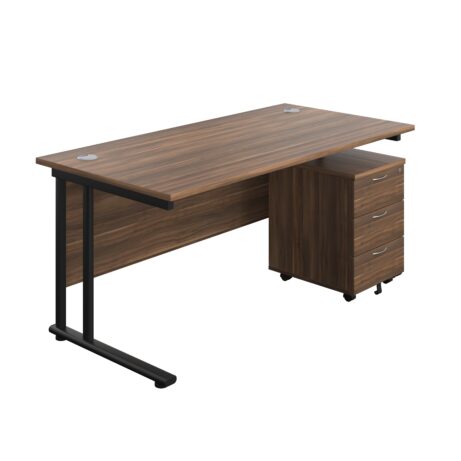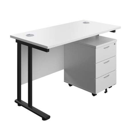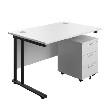 Why choose this desk? It tackles common office challenges with thoughtful features: adjustable feet for levelling on uneven floors, integrated cable ports to keep cables tidy, and a heat- and stain-resistant top with protective edge banding for longevity. A modesty panel adds a touch of privacy, and the powder-coated steel cantilever frame ensures a sturdy, reliable base. The mobile pedestal houses three drawers for organised storage at hand, keeping your workspace uncluttered as tasks evolve.