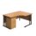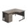 Perfect for right‑handed users, the desk places the primary working area on the right to support an efficient workflow. It includes adjustable feet to level on uneven floors and a heat and stain resistant top with protective edge banding for everyday use. The high mobile pedestal offers three drawers for accessible storage, helping maintain a clutter‑free surface. A modesty panel is included for a neat, professional appearance, and the powder‑coated steel frame provides a solid, durable base.