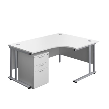 The Twin Upright Right Hand Radial Desk with High Mobile Pedestal is a practical, space‑saving workstation designed for busy offices. It combines a generous wooden desktop with a sturdy steel cantilever frame, delivering a clean, modern look while keeping cables tidy with built‑in cable ports. FSC-certified for responsible sourcing, it’s a reliable choice for workplaces aiming to balance performance with sustainability.